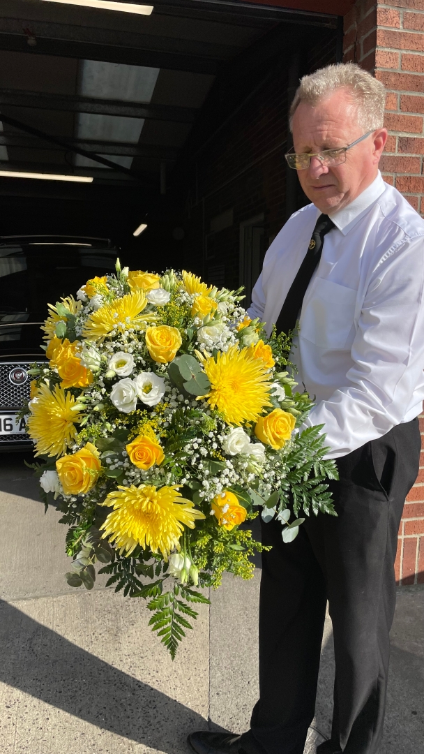 Bespoke Coffin Spray, double ended, full of seasonal flowers and foliage in a colour palette of your choice. If you have any special Flower requests, please contact us directly to discuss.